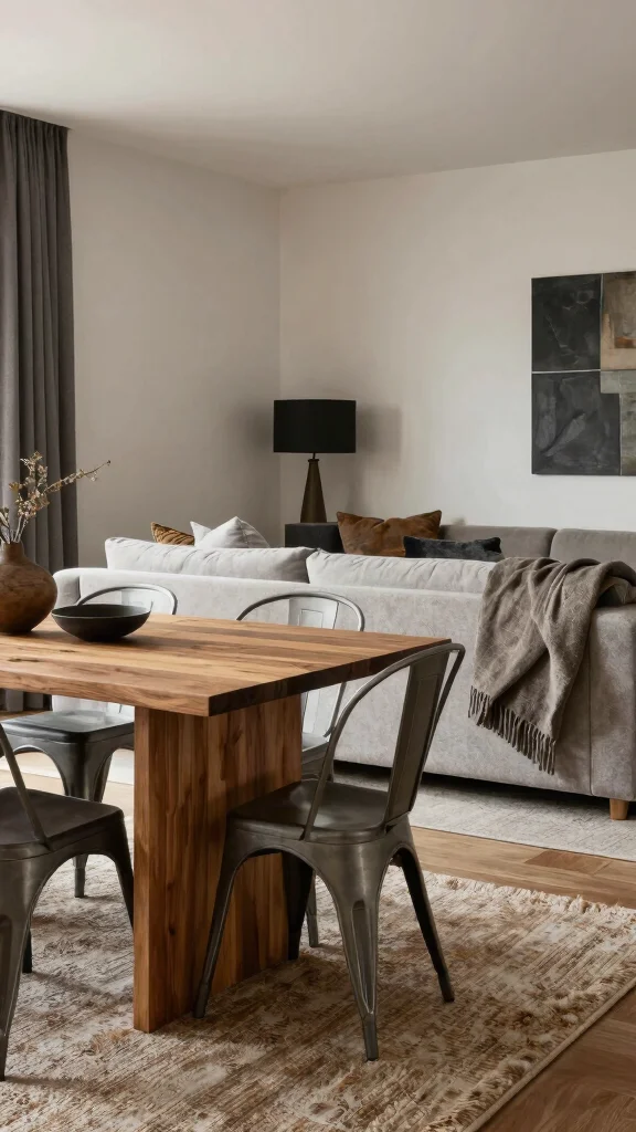 Finally, keep the dining seating flexible with stackable chairs or a compact bench so you can reconfigure for gatherings.
