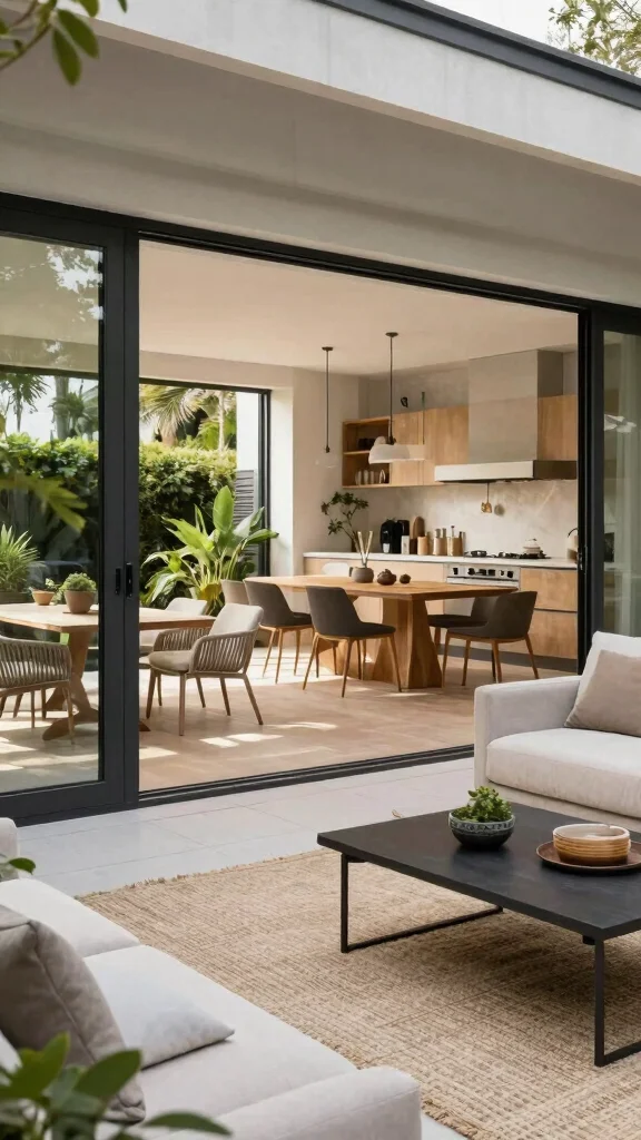 ❝ Fact: Opening outdoor spaces to your kitchen dining living room combo can boost usable space and natural light by up to 30%. Large sliding doors blur indoor/outdoor lines, inviting easy entertaining from kitchen to patio. ❞