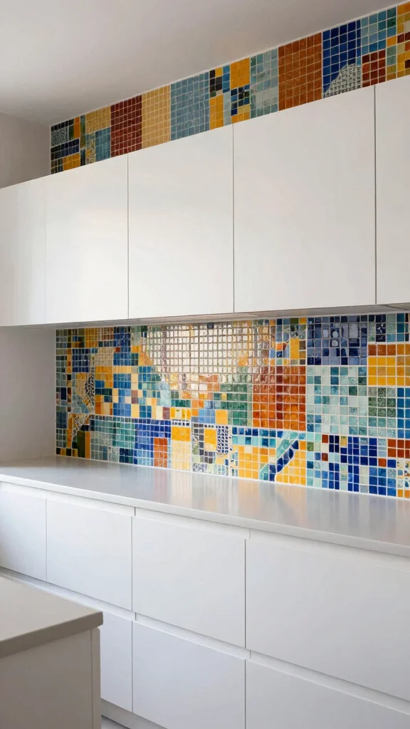 – Use bold colors or designs for striking contrast against neutral cabinetry.