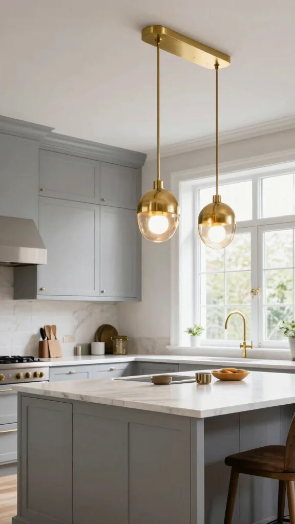 Statement lighting not only adds flair but also emphasizes modern functionality in your kitchen.