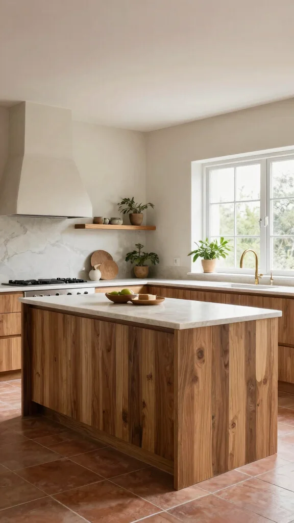 Fun fact: adding three natural materialsโwood cabinetry, stone countertops, and terracotta flooringโboosts warmth in kitchen interior design modern homes. These textures soften sleek lines and add authentic, durable charm for everyday cooking and entertaining.
