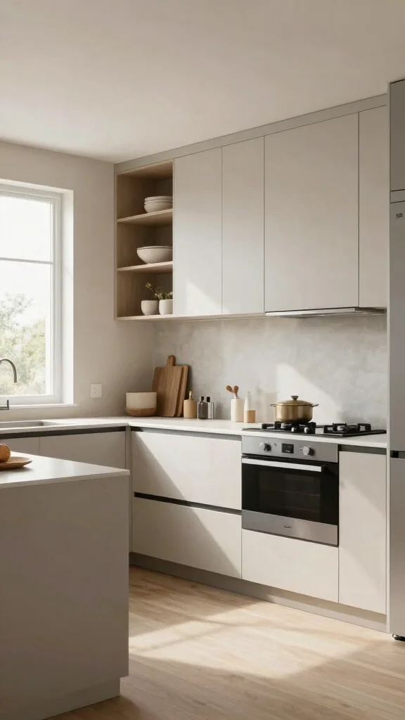 Choosing minimalist cabinetry can dramatically elevate the look of your kitchen. Opt for flat-front cabinets in soft hues or sleek high-gloss finishes to create a streamlined effect. This style not only enhances aesthetics but also simplifies upkeep, making it easier to keep your kitchen looking fresh. A handle-less design can further refine the look, providing a clean, uncluttered feel. Mix open and closed storage to optimize both functionality and style.