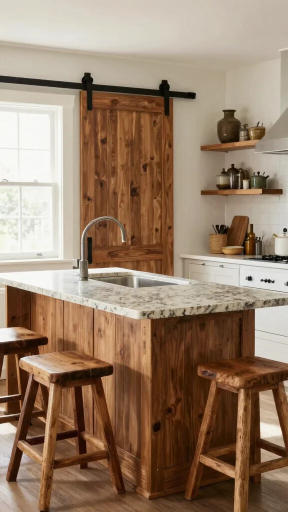 Transform old barn doors or pallets into a stylish kitchen island, combining functionality with sustainability.