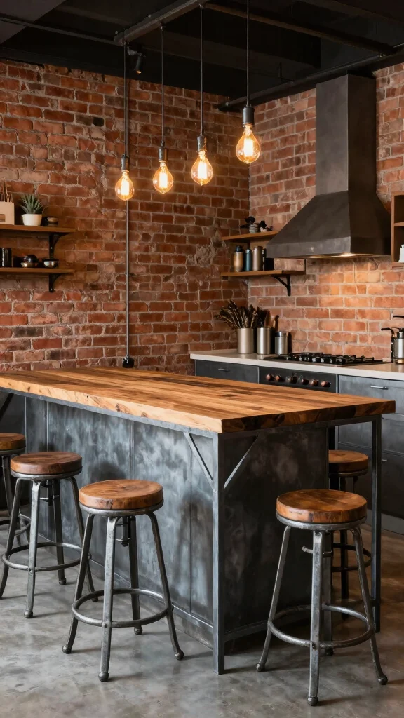 To achieve this look, consider adding vintage bar stools that complement the island’s rustic vibe. This spacious surface is perfect for cooking or entertaining, making it an ideal spot for family gatherings or dinner parties.