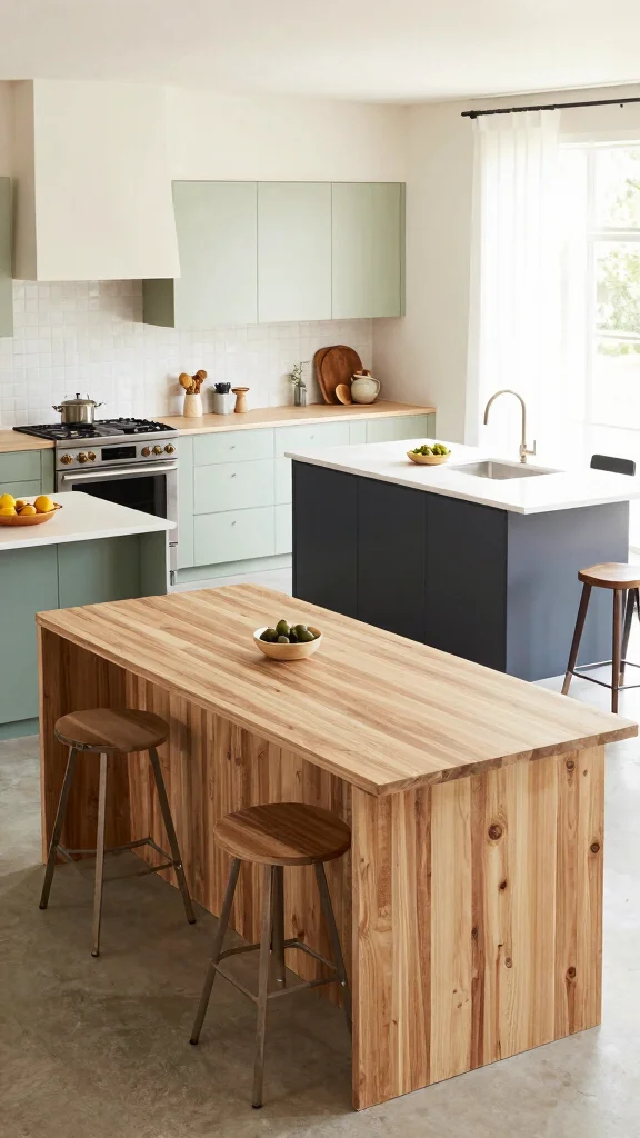 Transform your kitchen with a bright-colored island that adds a vibrant splash to your space! This design allows you to showcase your personality while creating a lively cooking environment. Using eco-friendly paints or stains ensures your colorful island is as sustainable as it is cheerful.