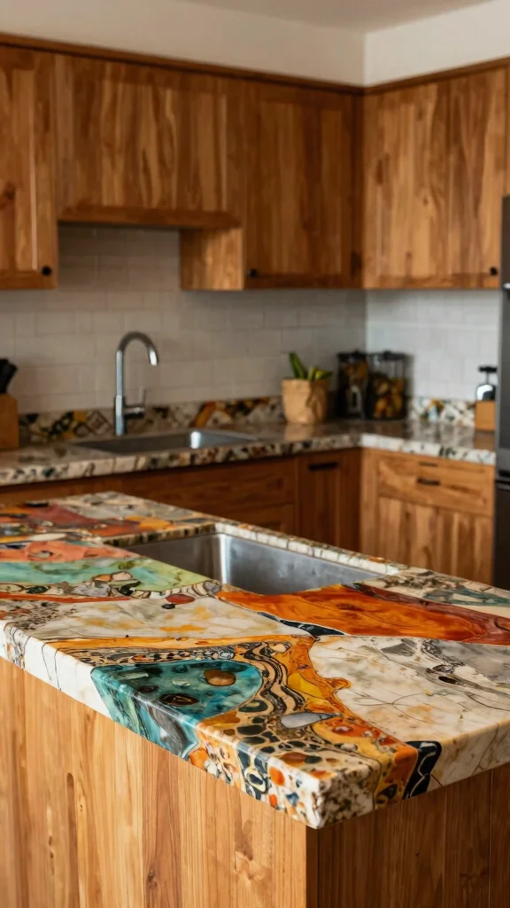 Are you looking for stylish yet eco-friendly countertops? Recycled materials like glass, resin, and concrete can create stunning surfaces that stand out. These materials often feature unique patterns and colors, making your kitchen both beautiful and sustainable. Choosing recycled options helps reduce waste while providing durability for everyday use.