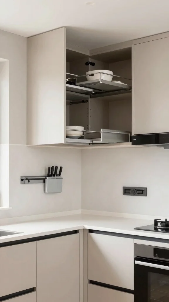 3. Implement rotating shelves in corner cabinets.