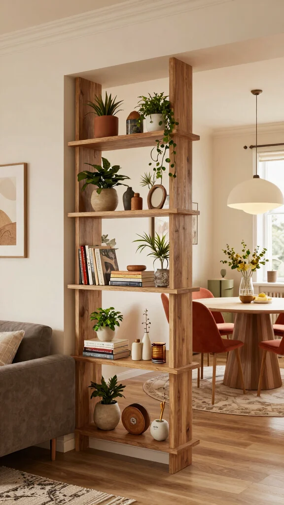 Fun fact: open shelving as a divider can free up to 15% more perceived space. In small rooms, this supports living and dining room partition ideas while adding storage. Pro tip: add lighting and mix books, plants, and decor to visually enlarge the area.