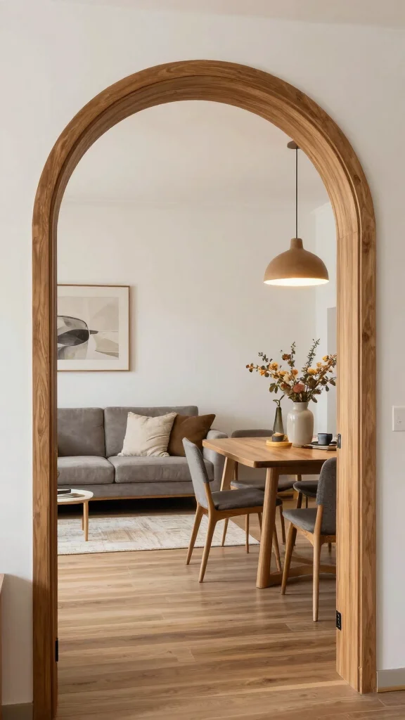 Frame the archway with colors or materials that complement your space for a polished look. Using pendant lights above can add warmth and interest to the area.