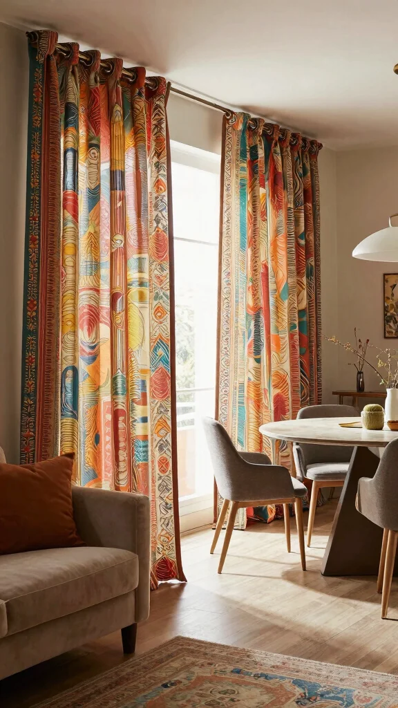 Artistic curtain partitions can infuse your space with vibrancy while allowing for dynamic changes based on your mood or occasion.