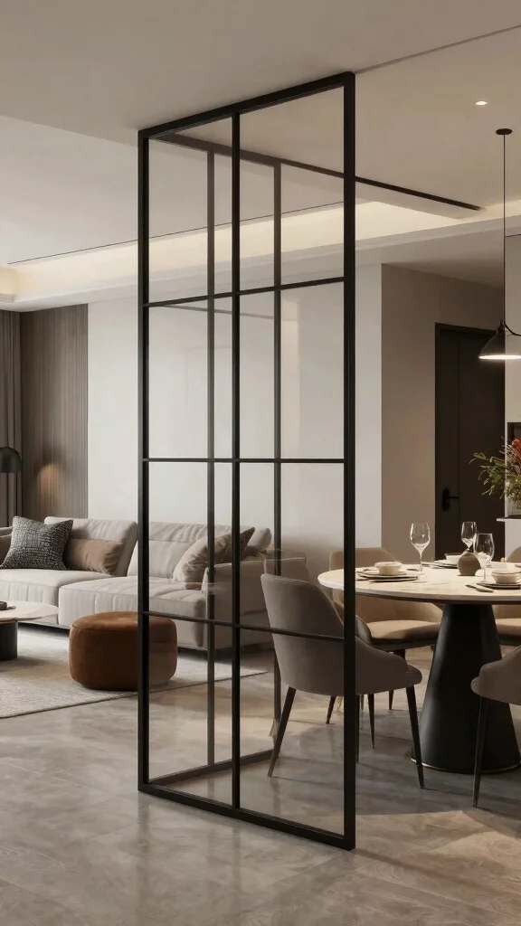Paneled glass dividers elevate your home’s aesthetic while defining spaces with style and grace.