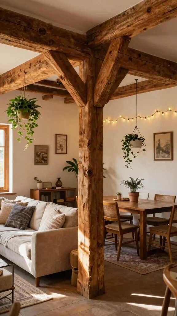 Rustic wooden beams not only add warmth but also instill a sense of history in your living space.