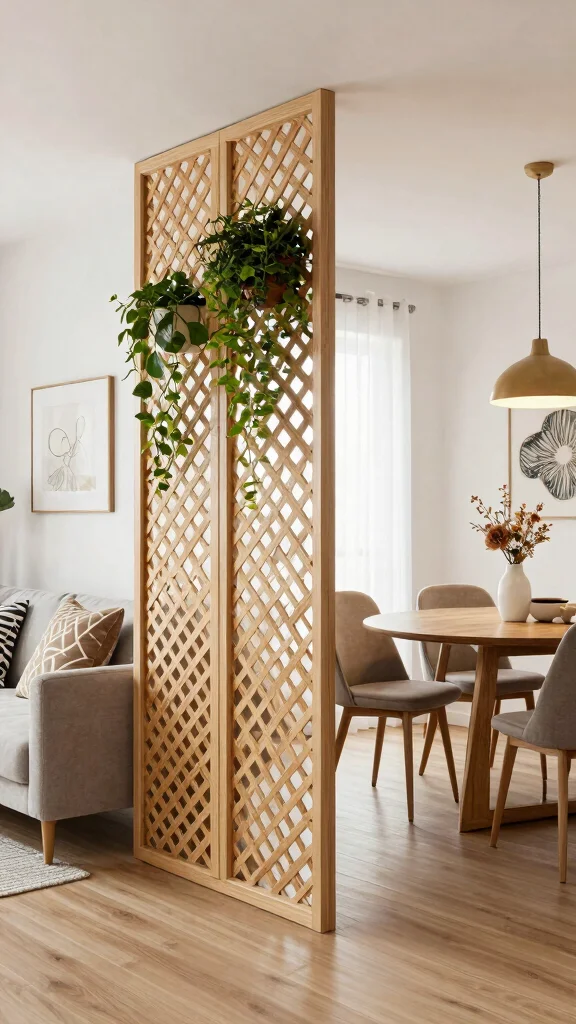 Lattice screens present an innovative solution with intricate designs that introduce texture and style. These dividers can effectively break up spaces while allowing air and light to circulate freely. They create a lighter feel compared to traditional options while serving as a faux wall. Choose painted lattice or natural wood for a more organic appearance.