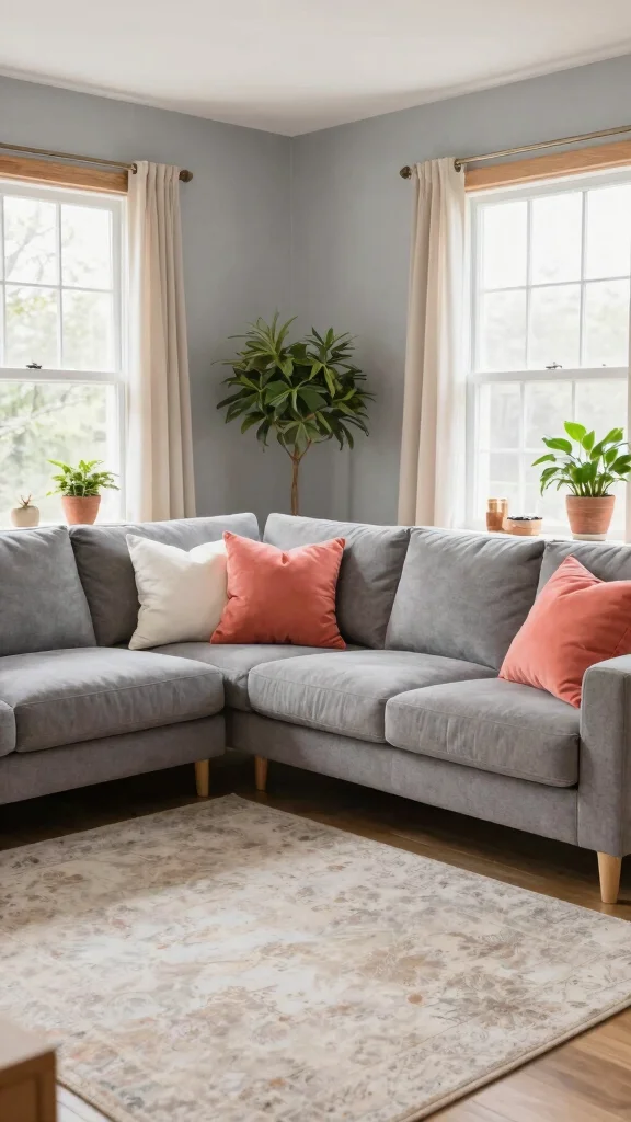 Muted coral paired with soft gray creates an elegant yet playful atmosphere in your living room. This color scheme is perfect for those looking to infuse warmth while maintaining sophistication. Coral can be introduced through cushions or artwork, bringing life to a gray-dominated space, while still feeling harmonious.For eco-friendly choices, consider sustainable materials for your textiles and furniture. Opting for organic cotton or recycled fabrics can enhance comfort while reflecting a commitment to the environment.Tips for This Look:– Utilize soft gray for walls, allowing coral accents to stand out.