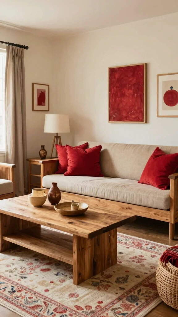 13. Warm Red and Natural Wood