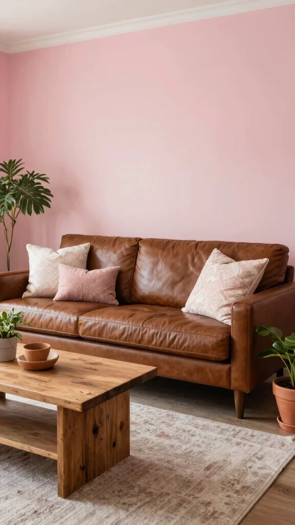 Combining soft pinks with earthy browns results in a warm and inviting atmosphere that feels both romantic and cozy. This color scheme is perfect for those who appreciate a whimsical touch in their living spaces. Imagine soft pink walls paired with rich brown furniture, creating a delightful contrast that invites relaxation and comfort.Incorporating reclaimed wood elements can amplify this eco-friendly vibe while adding character. Choosing organic textiles in natural fibers ensures your decor aligns with sustainable practices, reinforcing your commitment to the environment.Tips for Achieving This Look:– Use gentle blush tones for walls to maintain a light and airy feel.