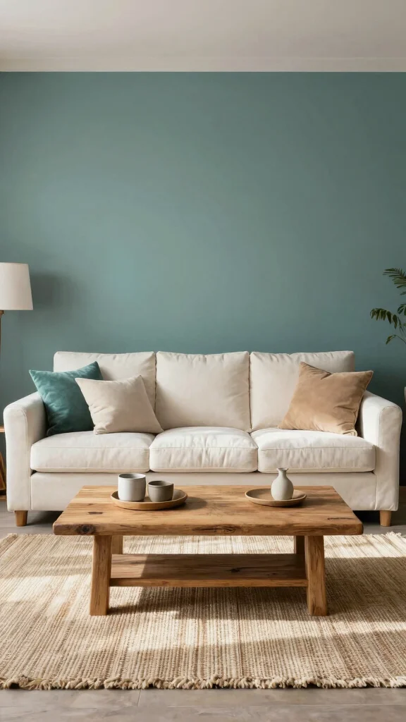 Muted teal combined with soft cream offers an elegant and calming atmosphere perfect for any living room. This pairing introduces a hint of sophistication while ensuring the space feels soft and inviting. Teal works wonderfully as a backdrop for cream-colored furniture and décor, creating a serene sanctuary within your home.To maintain an eco-friendly aesthetic, seek out sustainably sourced wood and organic textiles that enhance your design while being gentle on the planet. This palette thrives in naturally lit spaces, making it a perfect choice for sun-drenched rooms.Tips for Creating This Look:– Choose muted shades to keep the room feeling tranquil and balanced.