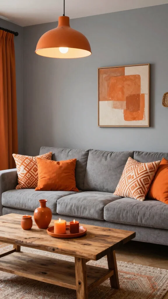 Combining rustic orange with soft gray creates a cozy and stylish living space that feels warm and inviting. This palette is especially effective in gathering areas, offering a cheerful yet subdued ambiance. Orange evokes warmth and happiness, while gray provides a grounding effect that balances the vibrancy of orange.To keep your design eco-friendly, select natural fabrics that echo the warmth of orange. Textured throws and cushions can enhance this cozy atmosphere while ensuring sustainability in your choices.Tips for This Palette:– Balance the brightness of orange with soft gray to avoid overwhelming the space.