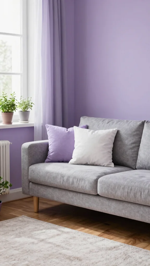 Lavender paired with soft gray creates a tranquil and refreshing atmosphere in your living room. This soothing palette is perfect for those seeking a peaceful space to unwind. Imagine lavender walls beautifully complemented by gray furniture, resulting in a soft and inviting aesthetic.For eco-friendliness, choose organic paints and sustainable materials for your decor elements. Soft fabrics in natural fibers can add warmth and comfort to this lovely pairing, reinforcing your commitment to the environment.Tips for This Palette:– Use lavender as the primary color for walls, letting gray serve as an accent.