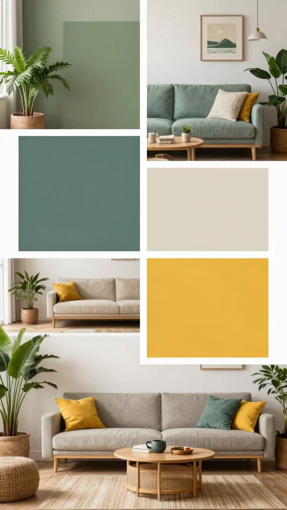 Choosing the right living room color combination can be a powerful way to express your style and create a welcoming environment. Each of these palettes not only enhances the beauty of your space but also promotes an eco-friendly approach to design. From earthy greens to vibrant yellows, there’s a color combination here for every personality and lifestyle.
