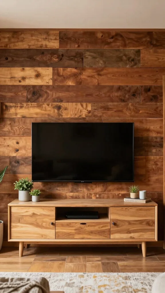 Incorporating wood accents into your living room TV wall design can introduce warmth and texture, creating a cozy atmosphere. Whether through reclaimed wood paneling or a rustic media console, these elements soften modern aesthetics while adding character. Pair natural wood tones with minimalist decor for a balanced look. Add plants or earthy elements to enhance the rustic feel, making the space inviting and homey.