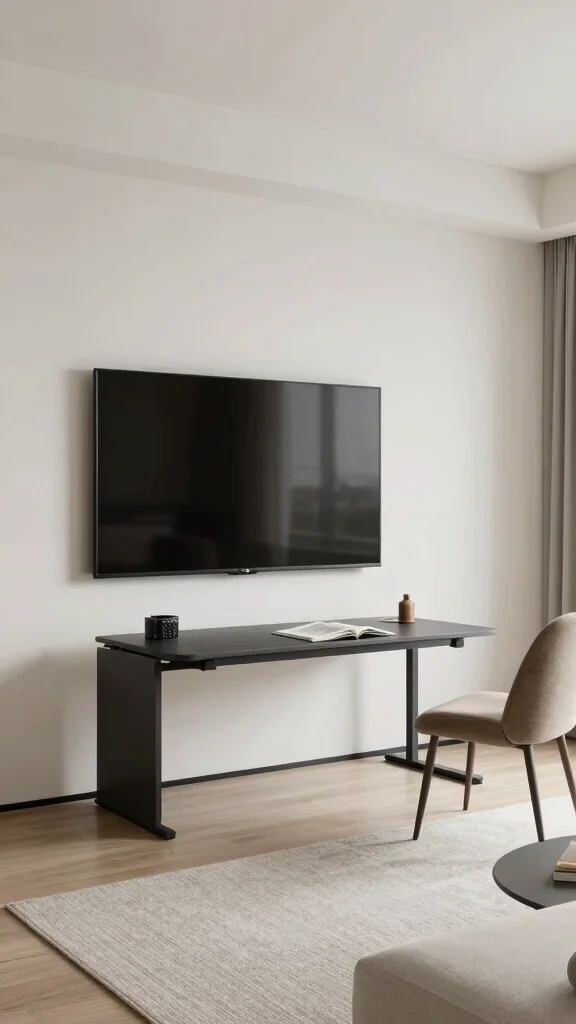 For cables, consider concealed cable management or in-wall wiring where possible. Practical steps: measure your TV, choose a low-profile mount, pre-plan storage, and add soft lighting behind the TV for subtle glow.