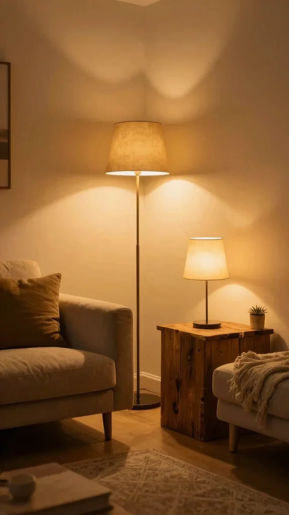 Warm lighting is essential for creating a cozy and inviting atmosphere in your living room. Instead of relying on harsh overhead lights, focus on warm accent lighting that enhances the beauty of your decor. Using floor lamps, table lamps, and sconces adds layers of light, creating a comfortable and glamorous ambiance.