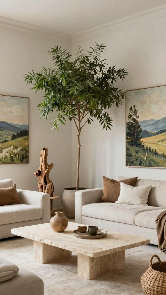 Bringing nature-inspired decor into your living room fosters a serene and luxurious environment. Incorporating elements such as plants, stones, and natural artwork enhances both beauty and well-being. Greenery not only purifies the air but also adds vibrancy, making your space feel alive and inviting.