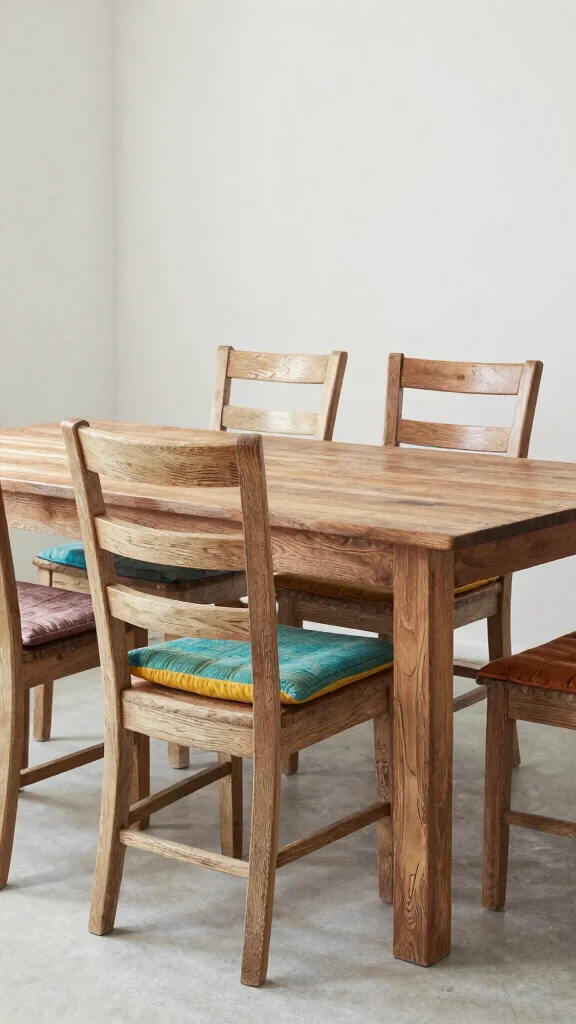 Look for chairs in earthy tones that harmonize with your overall color scheme, creating a cohesive feel. Incorporate different chair heights around the table for an unexpected twist that adds visual interest. Ensure that the chairs are functional and easy to clean, especially for family meals, to maintain a practical design.