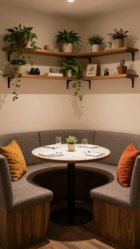 If space is at a premium, creating a functional dining nook can maximize every inch of your area. A built-in bench or a small round table tucked into a corner provides a cozy dining experience without compromising on style. Add cushions for comfort and personality, and consider shelves above for functional storage or display options. This clever design can transform a tight space into an inviting and practical dining area.