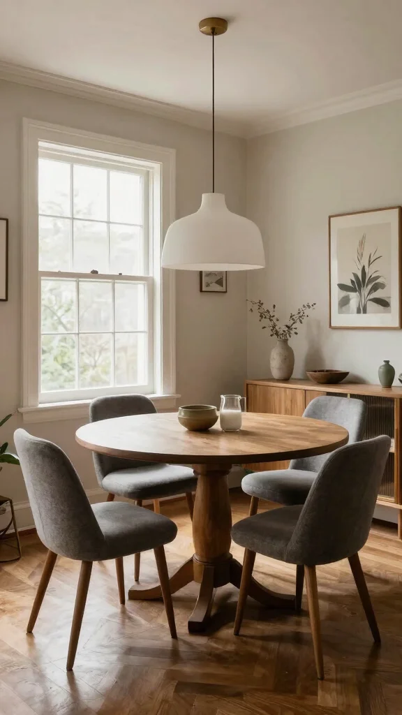 Choose furniture with hidden storage or slim profiles, and incorporate a dining bench to save space. Use vertical decor and a simple color palette to keep the room feeling open, and pick durable, easy-to-clean materials that still convey warm, cozy character.