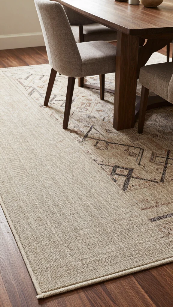 Opt for natural fiber rugs that offer durability and ease of cleaning, making them ideal for dining spaces. When mixing patterns, choose a smaller rug with colors that echo the larger one for a harmonious look. Ensure both rugs lie flat to avoid tripping hazards while maintaining a cozy atmosphere.