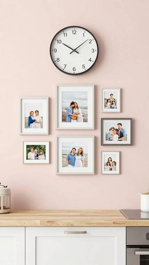 Incorporate art by creating a gallery wall with various pieces, using chalkboard paint for a fun way to display messages, or including decorative clocks and artful shelving for added flair.
