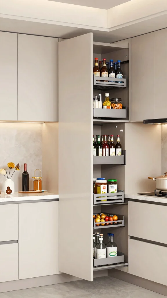 A pull-out pantry transforms your cooking experience, making meal prep easier and more enjoyable, with everything at your fingertips.