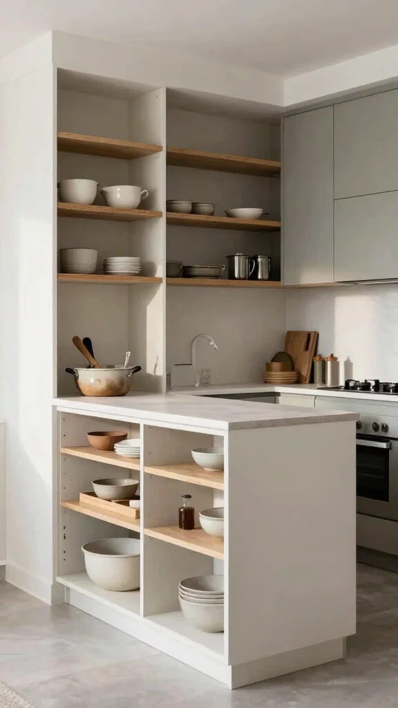 – Choose Open Shelving: Instead of bulky cabinets, opt for open shelving. It costs less and can create a spacious feel.
