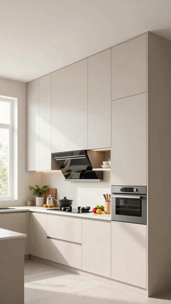 When space is at a premium, let your cabinets stretch to the sky! Vertical cabinets are a brilliant solution that makes the most of your wall space while adding a sleek aesthetic. Reaching from floor to ceiling, these cabinets can be designed with organized compartments and stylish handles, enhancing storage capacity without sacrificing style. Their height not only offers ample storage but also gives your kitchen an elegant, streamlined appearance.