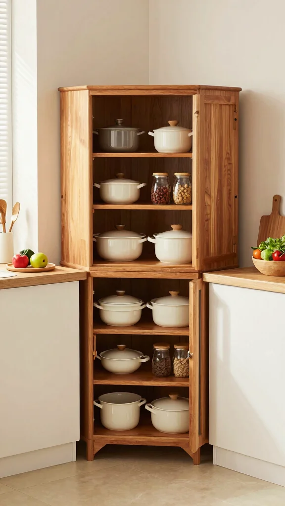 Maximize your kitchen’s potential by utilizing corner cabinets with lazy Susans! These ingenious designs ensure that no space goes to waste, allowing you to access items that often get lost in the back. With rotating shelves, lazy Susans make it easy to store pots, pans, and small appliances while keeping everything organized and within reach.