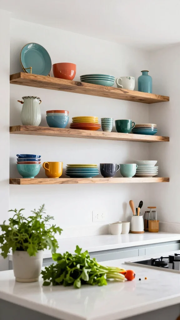 Open shelving encourages creativity and serves as an opportunity to infuse personal style into your kitchen, turning everyday items into beautiful decor.