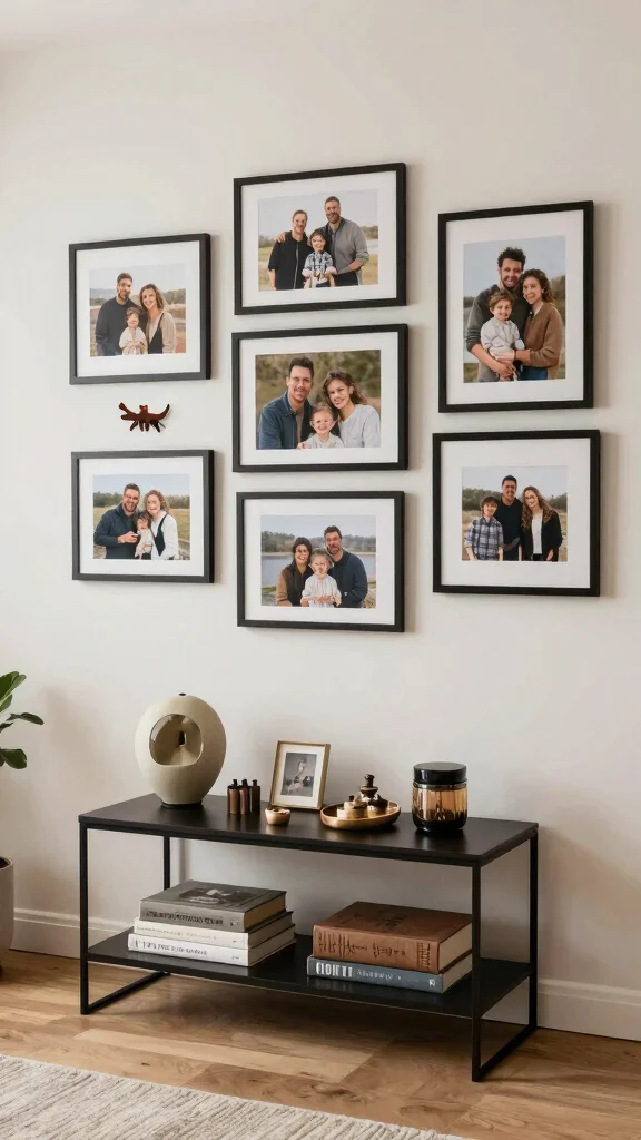 Designate a small area for displaying these personal items, such as a side table or a gallery wall, ensuring they align with your color scheme. Regularly rotating these pieces keeps the decor fresh and reflective of your journey.