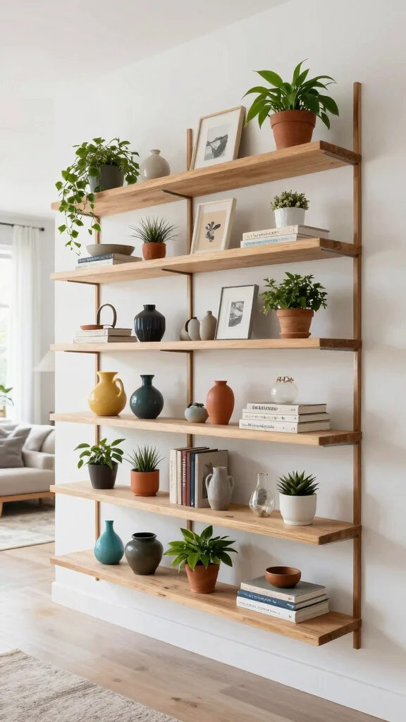 Incorporating open shelving in your living and dining areas allows you to showcase decor while keeping the space open and airy. Instead of closed cabinets, consider floating shelves that display decorative items, books, and plants. This design choice invites personal touches into your home while maintaining a light atmosphere.