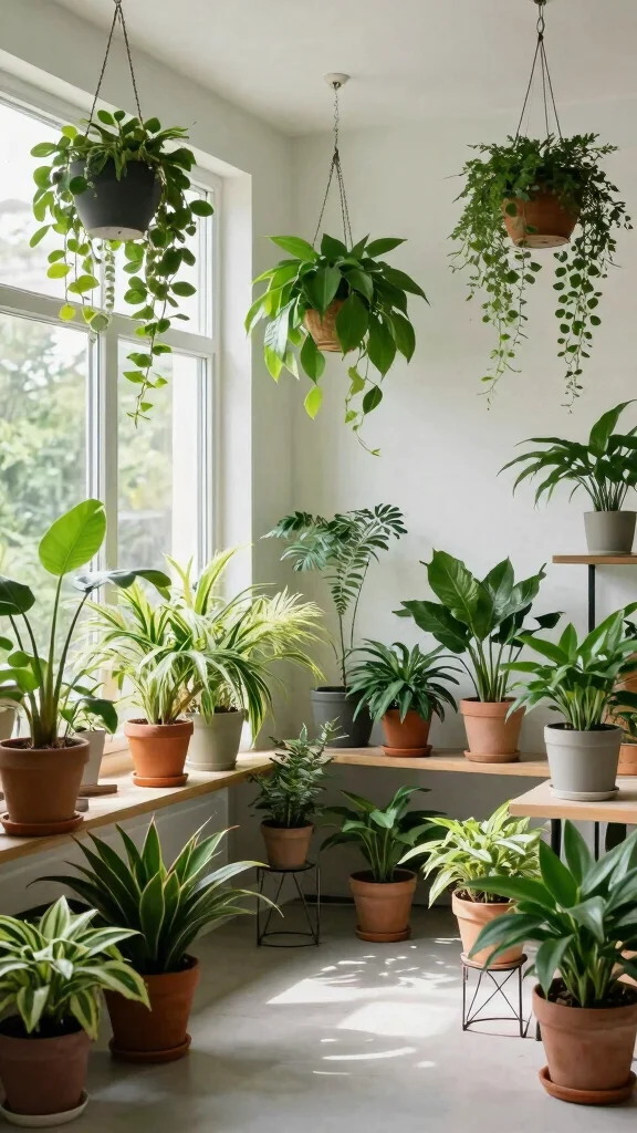 Using hanging plants can save ground space while adding layers to your decor. Grouping plants of varying heights can create a stunning focal point without overwhelming the minimalist theme. Decorative pots can complement your color scheme, making the greenery an integral part of your design.