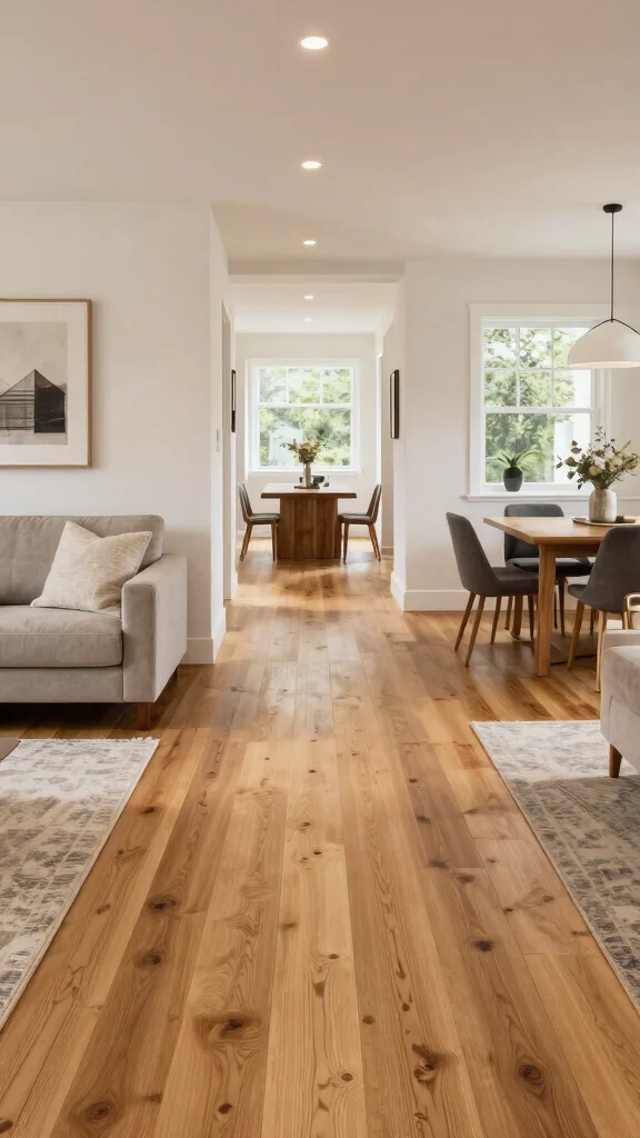 Select durable and easy-to-maintain options, especially for high-traffic zones. If you want to add texture, consider using area rugs to define spaces without changing the flooring material. Lighter colors can create a sense of openness, while darker tones add warmth.