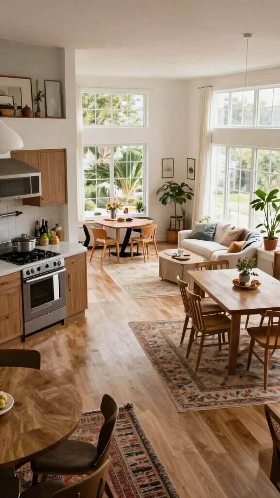 – Cohesive Color Schemes: Select a unified color palette that creates flow between the kitchen, dining, and living areas.