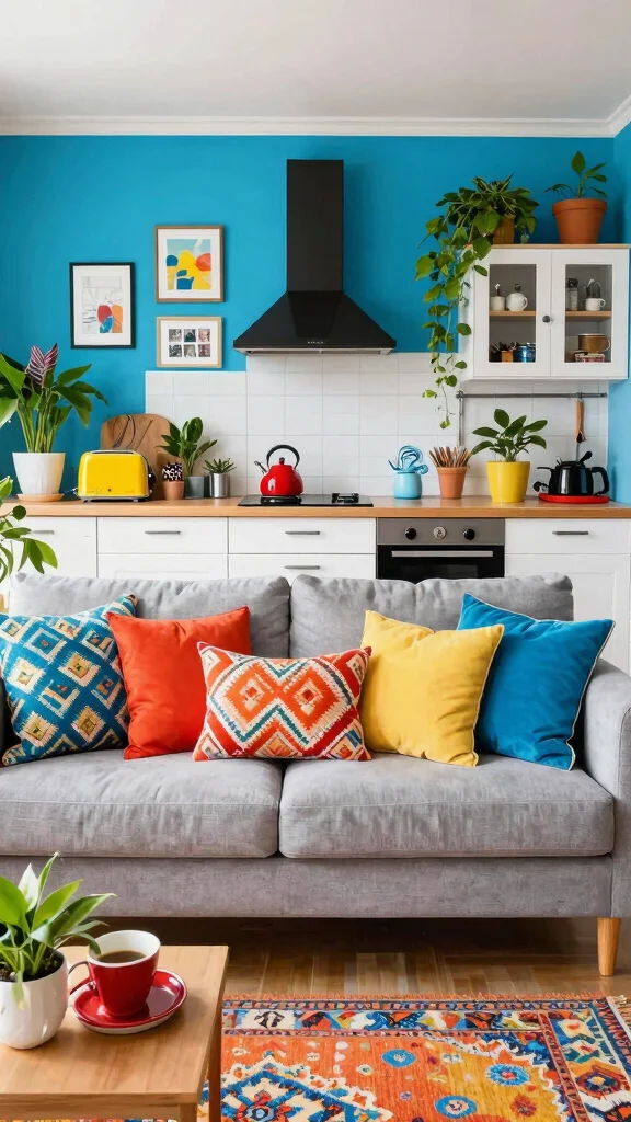 Introduce vibrant colors through decor and accessories to create visual interest and a lively atmosphere in your space.