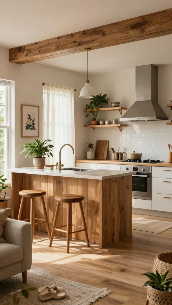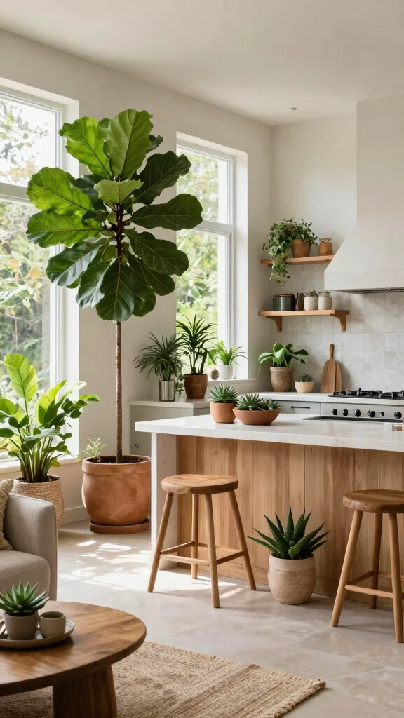 – Incorporate greenery to complement natural elements—like potted herbs in the kitchen.