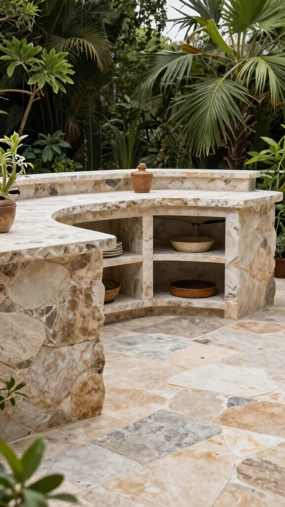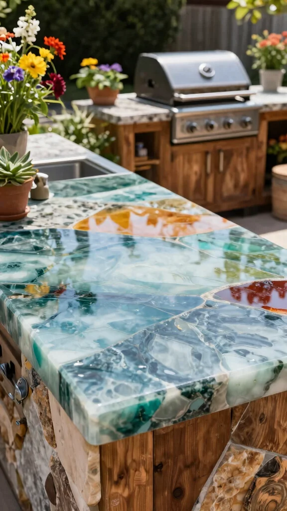 Fun fact: recycled glass countertops can reduce waste by up to 40% in outdoor kitchen design projects. They pair beautifully with eco-friendly concrete for flexible shapes and natural stone for lasting style. Pro tip: prioritize durability as you blend beauty and sustainability in your outdoor kitchen design.