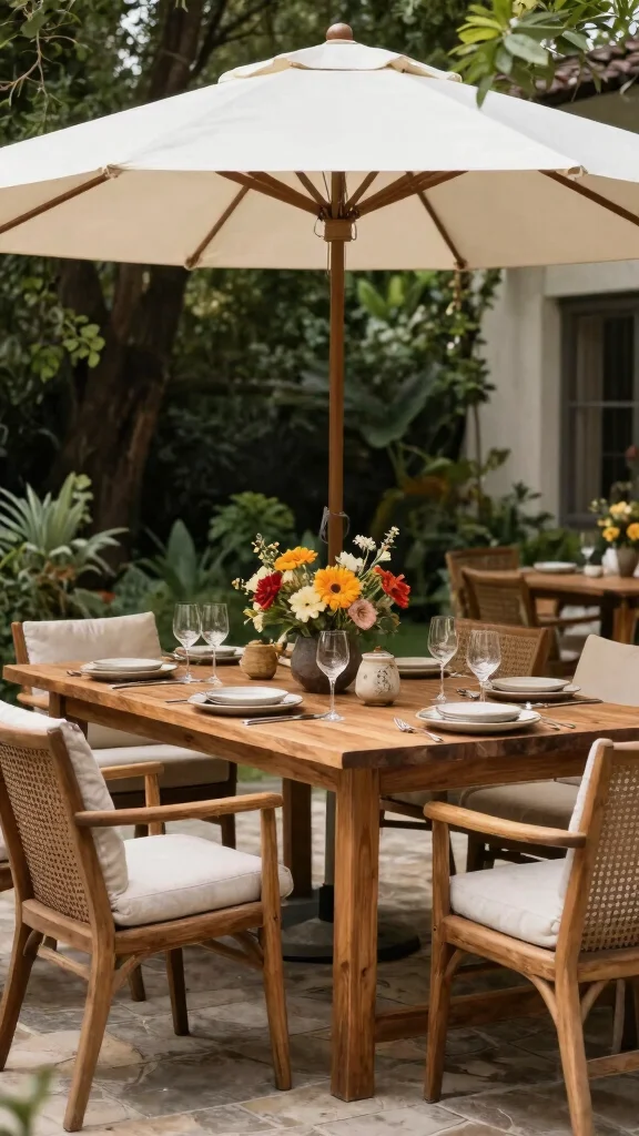 ❝ Did you know that a shaded outdoor dining setup can extend alfresco meals by up to 60%? Pair a stylish dining table with comfy chairs and eco-friendly table settings using wood, stone, or recycled materials to boost your outdoor kitchen design. ❞