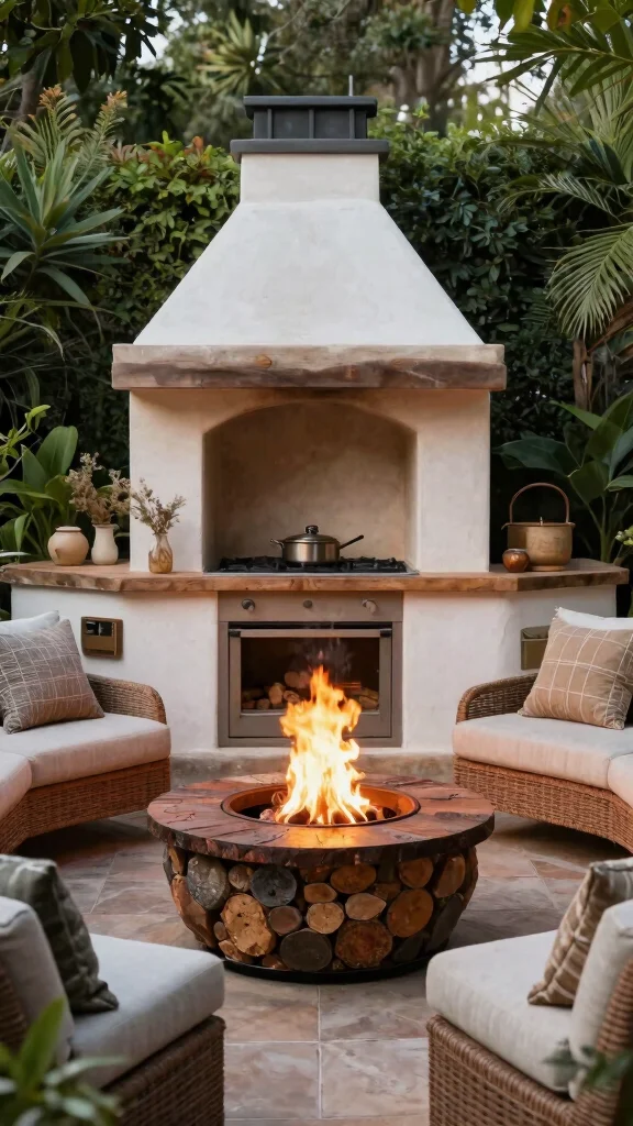 Fire features not only add warmth but also serve as a captivating focal point in your outdoor kitchen.