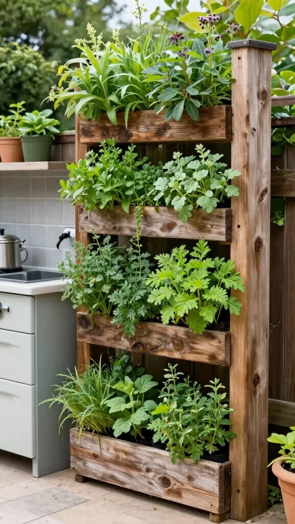 Enhance your outdoor kitchen’s aesthetic and functionality by integrating vertical gardens or herb walls. These living installations can be created from reclaimed wood and can house herbs like basil, rosemary, and thyme, providing fresh ingredients right at your fingertips.