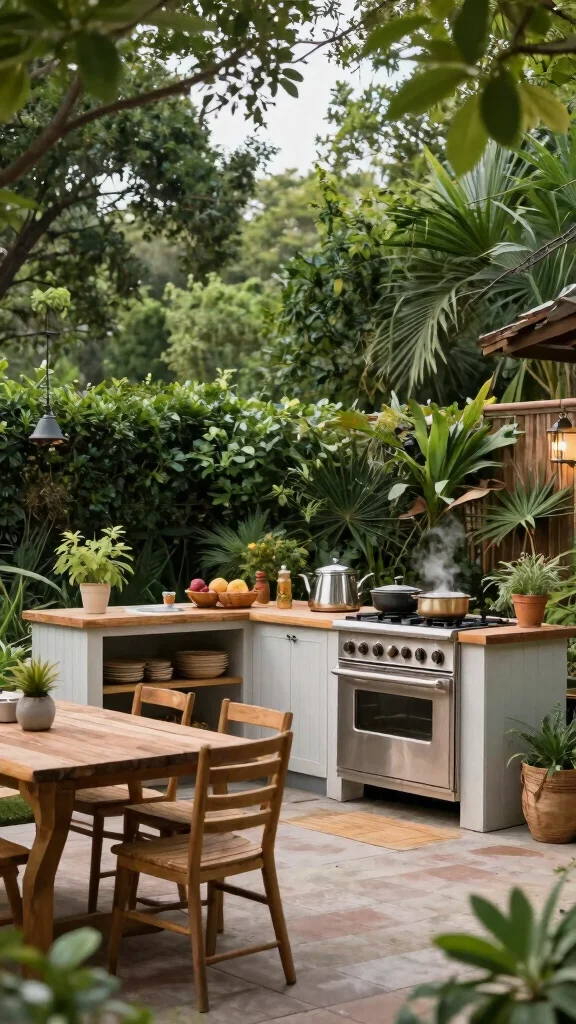 A thoughtfully designed outdoor dining setup can significantly enhance your alfresco experience. Choose a stylish dining table that complements your kitchen, paired with comfortable chairs for an inviting atmosphere. Consider adding a shade element like an umbrella or pergola to make dining enjoyable even on sunny days.